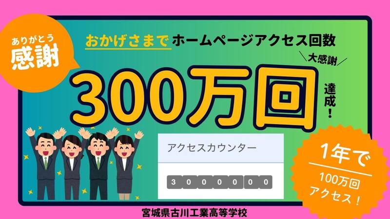 令和7年11月30日(日)19時頃、アクセス数が300万人を突破しました。これからも精一杯頑張ってまいります。今後ともどうぞよろしくお願いいたします!