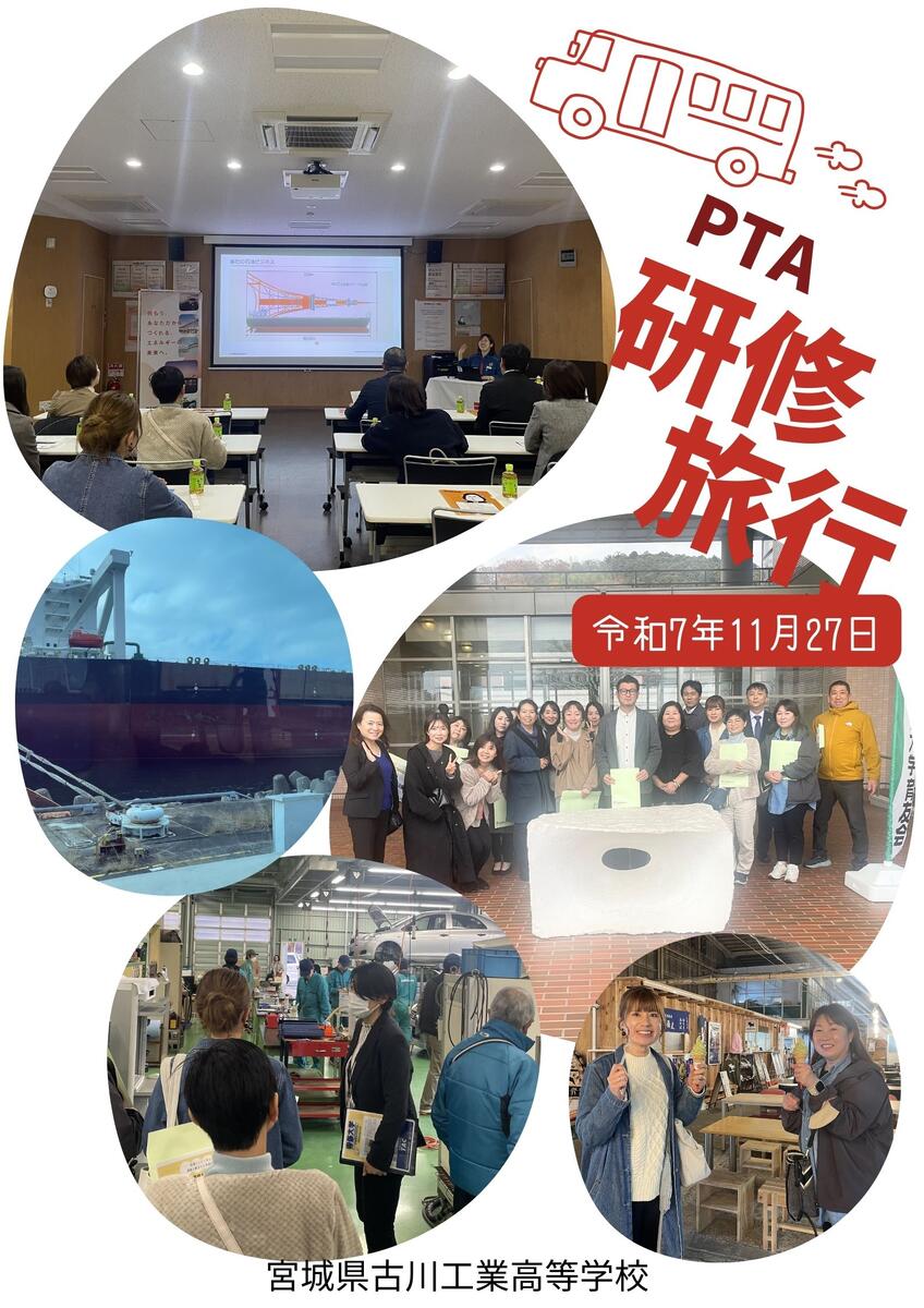 令和7年11月27日(木)PTA研修旅行が行われ、保護者15名教職員4名参加し、午前はENEOS株式会社仙台製油所を見学しました。卒業生による講話では「仕事で一番大変だったことは?」「高校時代の成績は?」「給料は?」など積極的な質問が出て、大いに盛り上がりました。昼食は塩釜卸売市場で魚料理など美味しく頂き、午後は石巻専修大で大学説明を聞き在校生との交流も行い、また施設見学をして大学についての理解を深めました。参加された皆さんは、今後のご家庭での進路についての一助となるよう、充実した研修となりました。