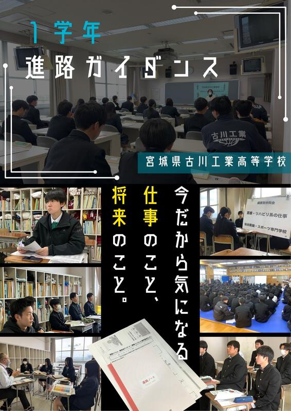 令和7年12日3日(水) 1学年の進路ガイダンスを行いました。1校時目は武道場で進路に関する講話をいただき、2・3校時は興味のある仕事ごとの分野に分かれて、その分野に関係する大学や専門学校の方から説明を聞きました。生徒たちは真剣に講師の方の話を聞き、一生懸命メモを取っていました。
