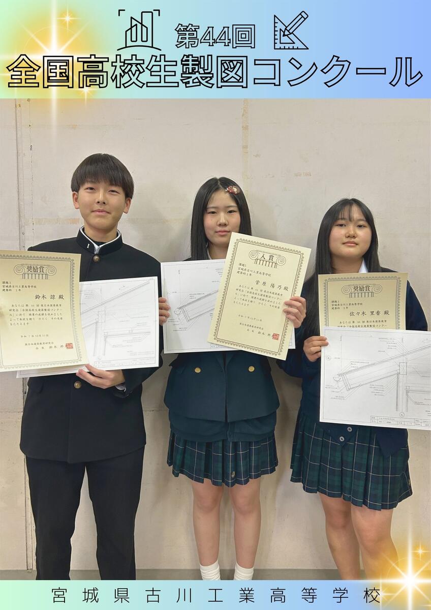 第44回全国高校生製図コンクール(課題1)において、1年生の菅原陽乃(すがわらひらな)さんが、見事入賞を果たしました!全国から寄せられた828点もの作品の中から、宮城県内では唯一の入賞となります。全国7位という非常に高い評価をいただきました。