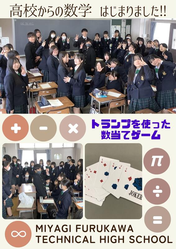 令和8年4月15日(水)に行った、化学技術科1年生の数学Ⅰの授業風景です。高校入学後、初めての数学の授業でした。前半は授業のオリエンテーションを行い、後半は、トランプを使った数当てゲームを行いました。今後も楽しく数学を勉強していきましょう。