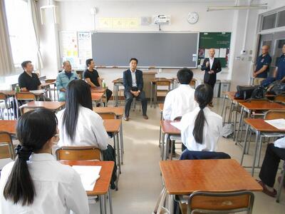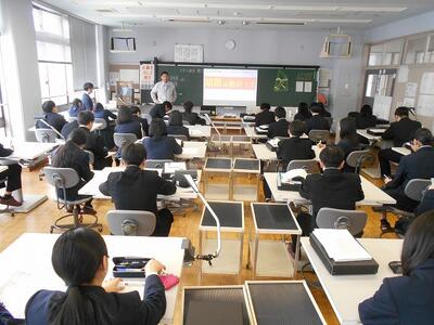 建友会会長の早坂竜太様から、3年生の生徒に向けて「主体的に行動してほしい」「小さいことの積み重ねの大切さ」「覚悟をすること」についてお話がありました。また、課題研究の表彰式も行われました。