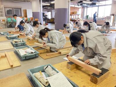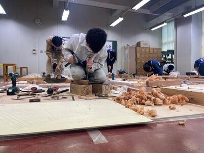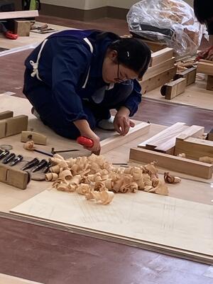 令和6年11月2日(土)高校生ものづくりコンテスト宮城県大会「木材加工部門」が、仙台市立仙台工業高校で行われ、本校からは3名の選手が出場しました。課題に従い、現寸図を40分以内、木材の加工組立を3時間以内で行います。日々の練習の成果を発揮し、3名とも時間内に作品を完成させることができました。応援ありがとうございました!