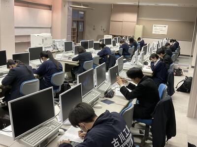 令和6年11月15日(金)建築科1年生の希望者が、計算技術検定の上位級である1級に挑戦しました。1級では「方程式」「ベクトル」「統計処理」の3種目が課されますが、今回はそのうちの2種目の合格を目指しました。写真は検定直前の猛勉強の様子です。