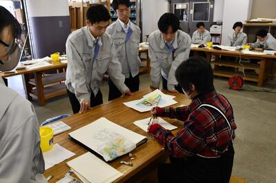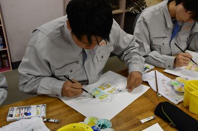 令和6年12月11日(木)~12日(金)建築科1年生を対象にパース着色講座を実施しました。外部より講師の先生をお招きし、2日間にわたり住宅パースの着色を行いました。線の練習から始まり、窓の着彩、壁の着彩、外構の着彩の順で進んでいきます。普段とは違う透明水彩の絵の具を使うことに、はじめは苦戦していましたが、全員個性のある住宅パースを完成させることができました。今後の学習にもいかしてもらいたいですね。
