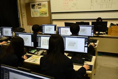 令和6年12月12日(木)~13日(金)建築科1年生を対象に3Dマイホームデザイナー講座を実施しました。このソフトは、平面図を入力することで、住宅などの建築物を立体的に起こしてくれるものです。住宅の提案やシミュレーションにとても適しています。今回は、「サザエの家を3Dマイホームデザイナーで再現してみる」という課題で行いました。使い方を覚えるとスムーズに作業を進めていました。最近はじまった、製図の自由設計の課題にもシミュレーションで使用できます。とても楽しく学習することができました。
