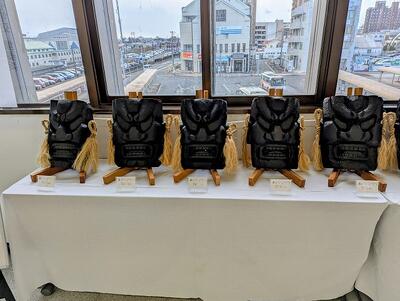 令和6年12月16日(月)建築科3年課題研究で火除け魔除けの神「釜神様」の制作に取り組んだ生徒12名の作品を、JR古川駅に展示しました。加美町文化協会 木彫りの会 小野惇夫様にご指導いただき、ノミなどの道具を使ってクリの木を彫り34時間かけて完成させました。