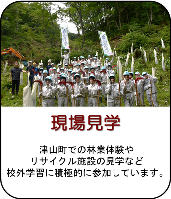 これは、平成20年から現在までの17年間にわたり、建築科1年生が下草刈りと間伐体験の実習を、津山町林業研究会様はじめ各団体の皆様にご指導いただきながら実施してきた活動が評価されたものです。