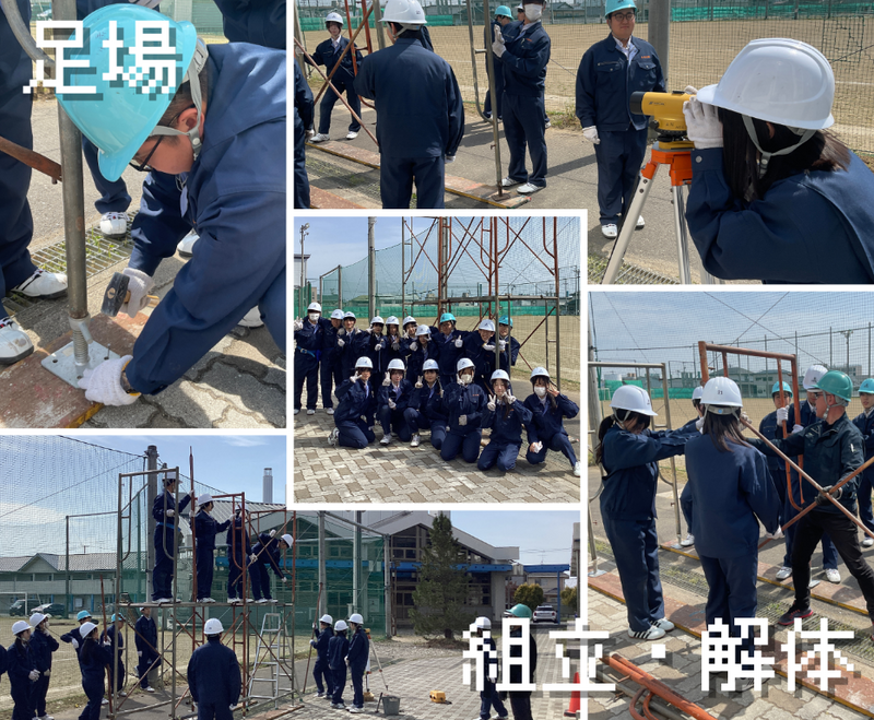 足場は仮設工事の一部であり、建築現場では欠かせないものです。3年生は高度でやりがいのある実習が多くあります。みんなで頑張ろう!