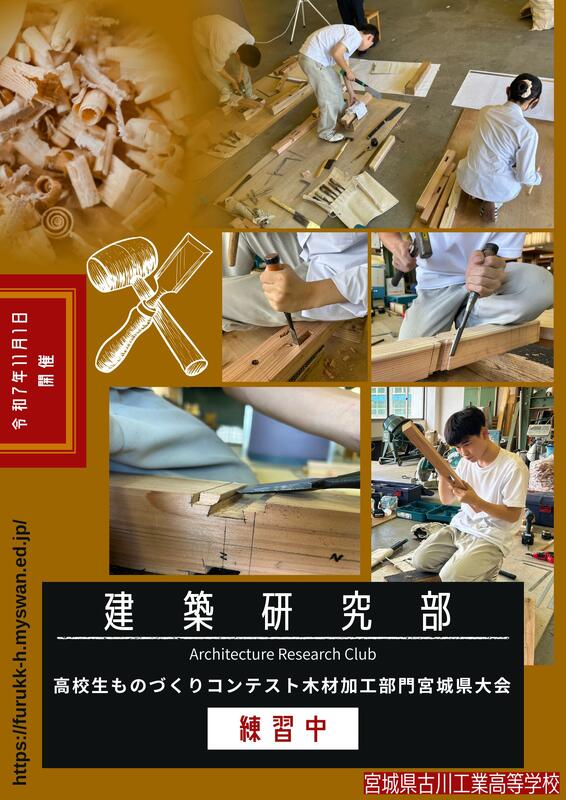 令和7年11月1日(土)に行われる高校生ものづくりコンテスト木材加工部門宮城県大会に向けた練習の様子です。暑い中での作業でしたが、自身の技術向上のために集中して取り組んでいました。上位大会を目指して、練習を頑張ろう!