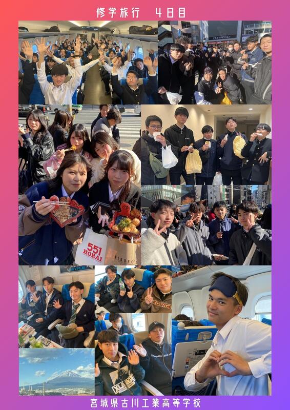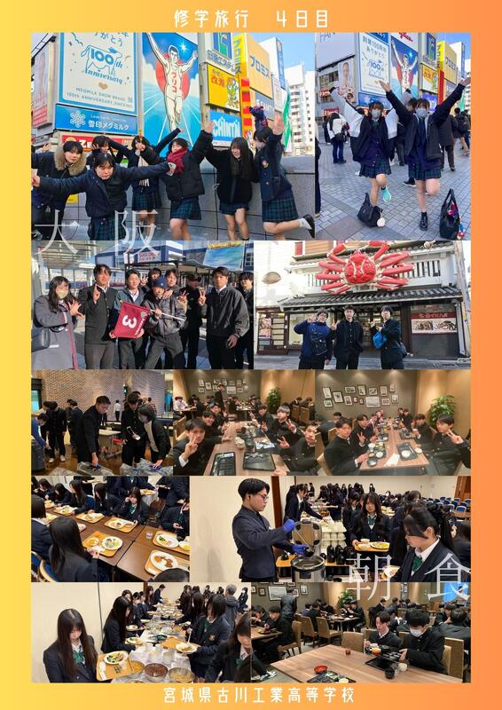 令和7年12月5日(金) 修学旅行4日目の様子をお届けします。最終日は海遊館や道頓堀などを楽しんだようです。帰りの新幹線でもみんな笑顔で元気です!