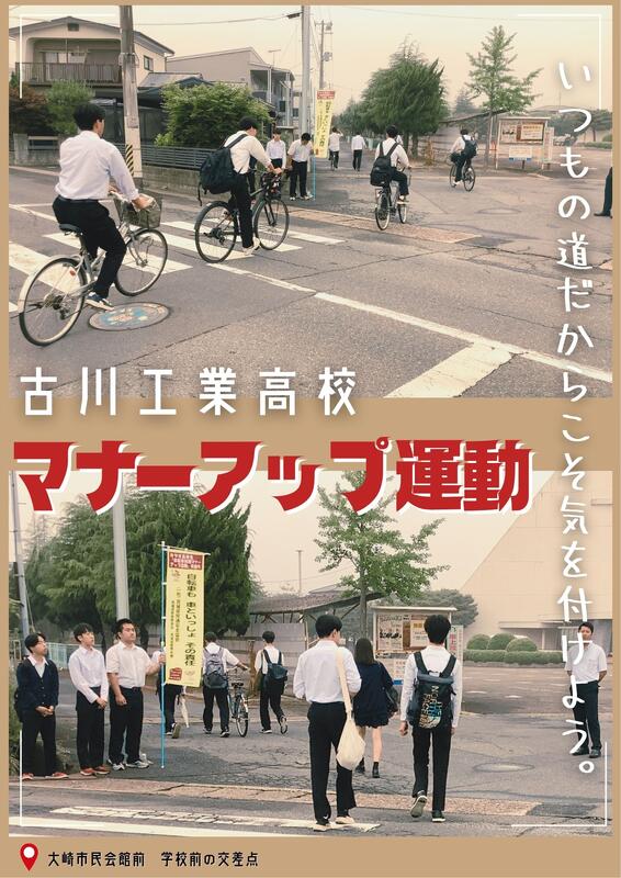令和7年6月25日(水)朝8:00より、学校前の交差点と大崎市民会館前でマナーアップ運動を行いました。今回は2学年の生活安全委員の生徒で実施し、交通ルールの声掛けと挨拶運動を兼ねて行いました。通学途中の事故に十分注意し、マナーを守って古川工業生らしい生活を送りましょう。