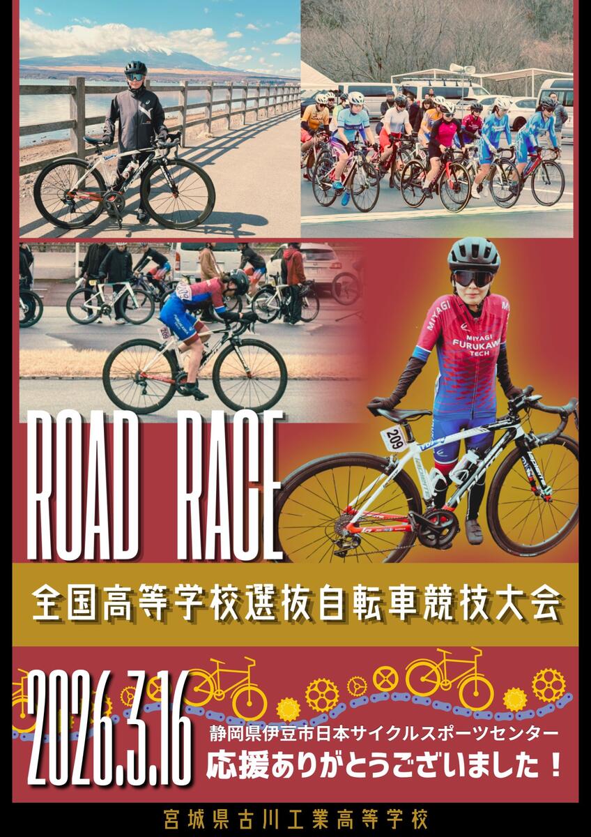 令和8年3月16日(月)静岡県伊豆市日本サイクルスポーツセンターにて全国高等学校選抜自転車競技大会 ロード競技が開催されました。電気電子科1年 後藤なるみさんが出場しましたが惜しくも完走とはなりませんでした。応援ありがとうございました。