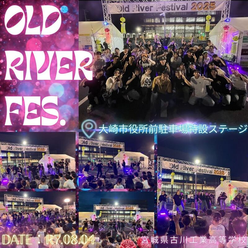 令和7年8月4日(日)に、第77回おおさき古川まつりの大崎市役所前駐車場メインステージ会場で行われたOLD RIVER FESに出演してきました。今回は古川黎明高校ダンス部と合同でステージに立ち、総勢50名の圧巻のパフォーマンスを披露することができました。夜の時間帯にも関わらず大崎市役所前駐車場メインステージ会場には多くの観客の方々が集まってくださり、ダンスを観て一緒になってステージを盛り上げていただき、誠にありがとうございました!