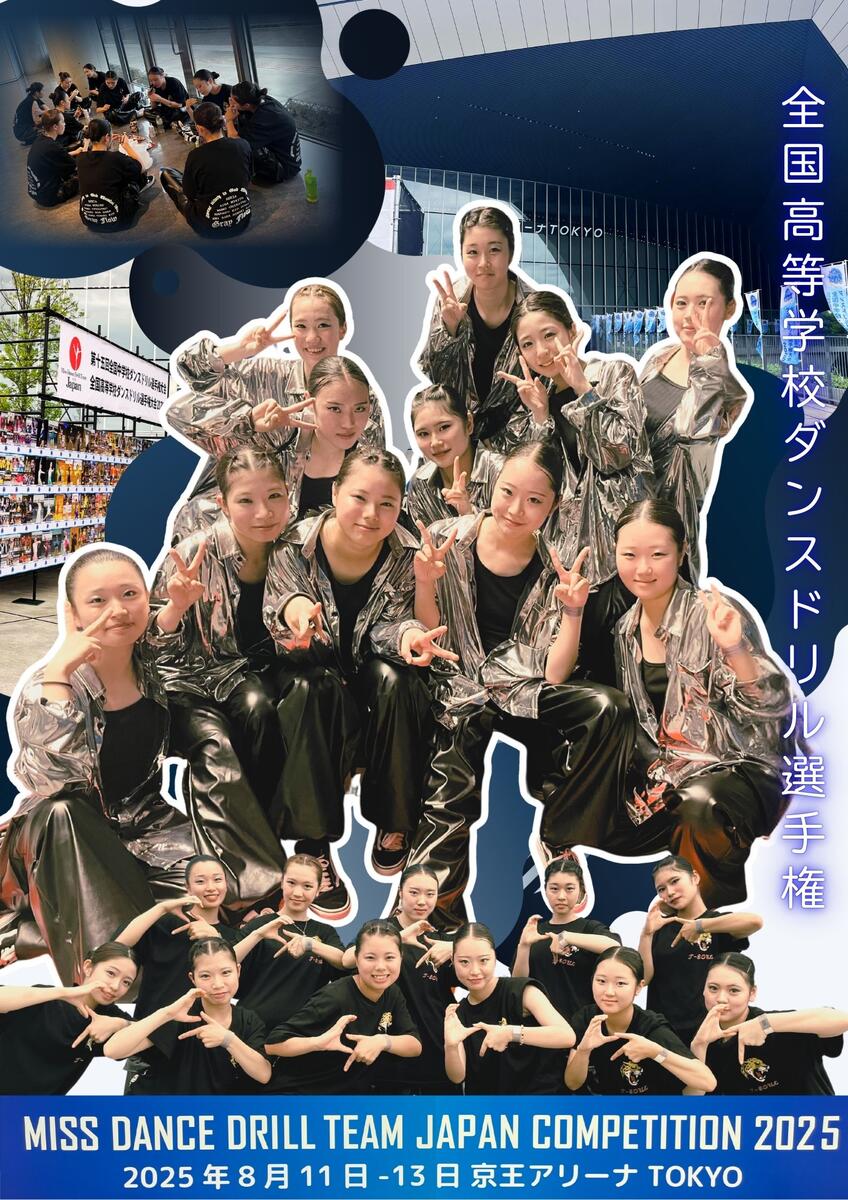 令和7年8月11日(月)から13日(水)にかけて、京王アリーナTOKYOにて開催された「全国高等学校ダンスドリル選手権大会 Miss Dance Drill Team Japan Competition 2025」に出場しました。東北大会を勝ち抜いたHIPHOP女子部門Medium編成で挑み、結果は第7位となりました。惜しくも上位入賞は逃しましたが、これまでの練習の成果を存分に発揮し、最高のパフォーマンスを披露することができました!多くのご声援、誠にありがとうございました!
