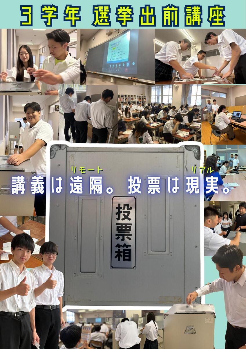 令和7年8月27日(水)選挙出前講座を実施しました。普段はあまり政治に関心がない生徒も講座を通して「声を届ける手段」としての選挙の大切さを実感したようです。講師の先生方ありがとうございました。