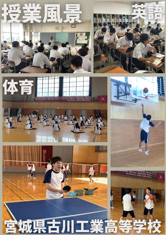 令和7年9月10日(水)に実施した、英語と体育の授業の様子です。英語では、SVOCの文法について。体育では、種目別に分かれた実技を行いました。工業科目や実習だけでなく、普通科目の授業も集中して受けているようですね。