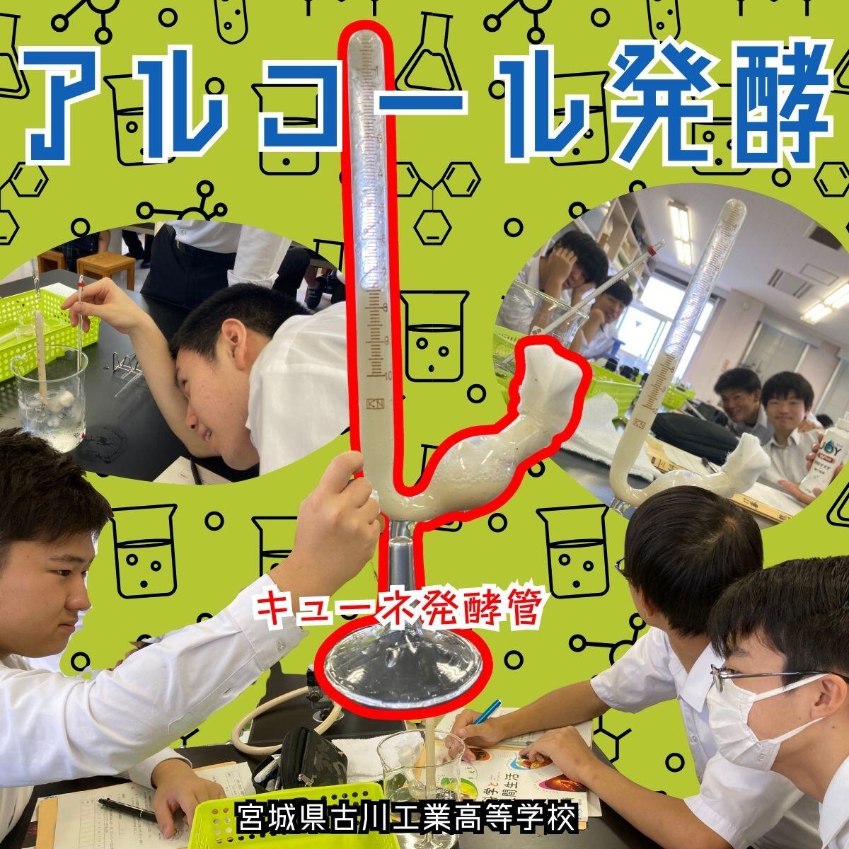 9月11日(木)電気電子科3年生の科学と人間生活で、「アルコール発酵」の実験を行いました。キューネ発酵管という器具を使い、温度によって発酵の進み方や気体の発生量がどのように変化するかを観察しました。発酵は、私たちの生活に欠かせないパンやお酒、味噌や醤油などの製造にも関わる大切な仕組みです。私たちの身近な発酵食品ともつながるテーマに、生徒たちは驚きと関心をもって学んでいました。