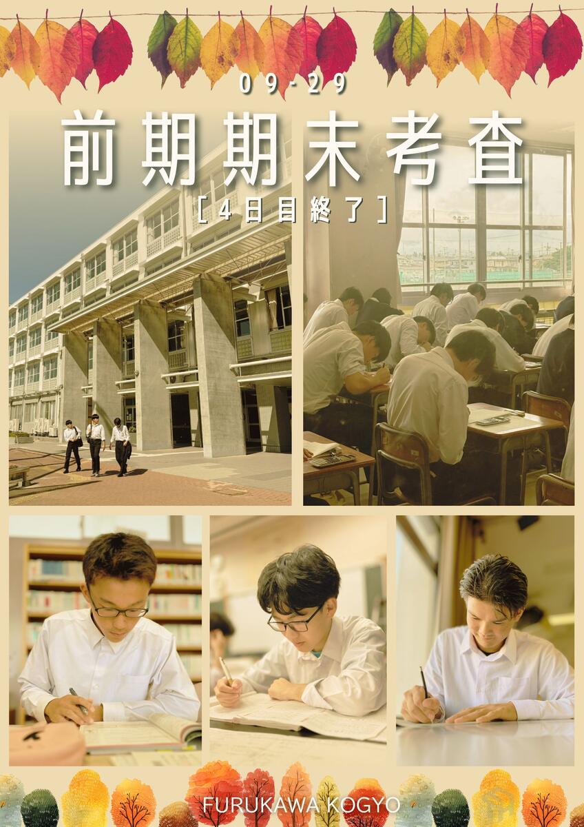 令和7年9月29日(月)前期期末考査も4日目まで終了しました。考査期間中はすぐに帰宅する生徒もいれば、帰りの電車時間に合わせて図書室や実習棟で勉強する生徒もいます。明日で考査終了です。最後まで頑張ってください。