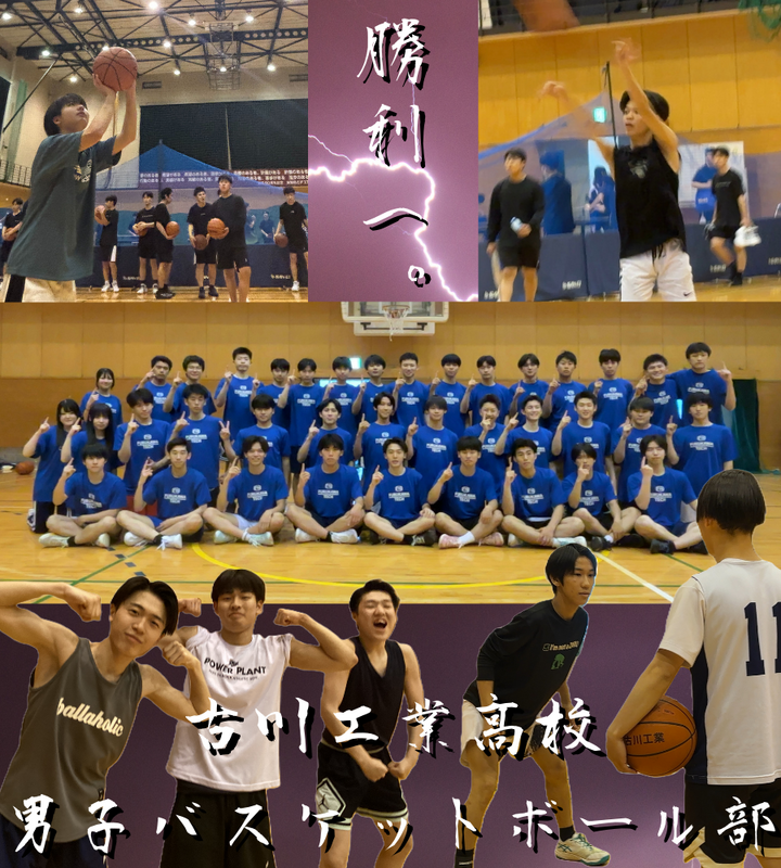 男子バスケットボール部が部活動をしている時の様子です。今は、6月6日から行われる県総体に向けてみんなで練習しています。三年生10名、二年生10名、一年生18名、マネージャー3名の計41名で県総体優勝に向けて頑張っています!