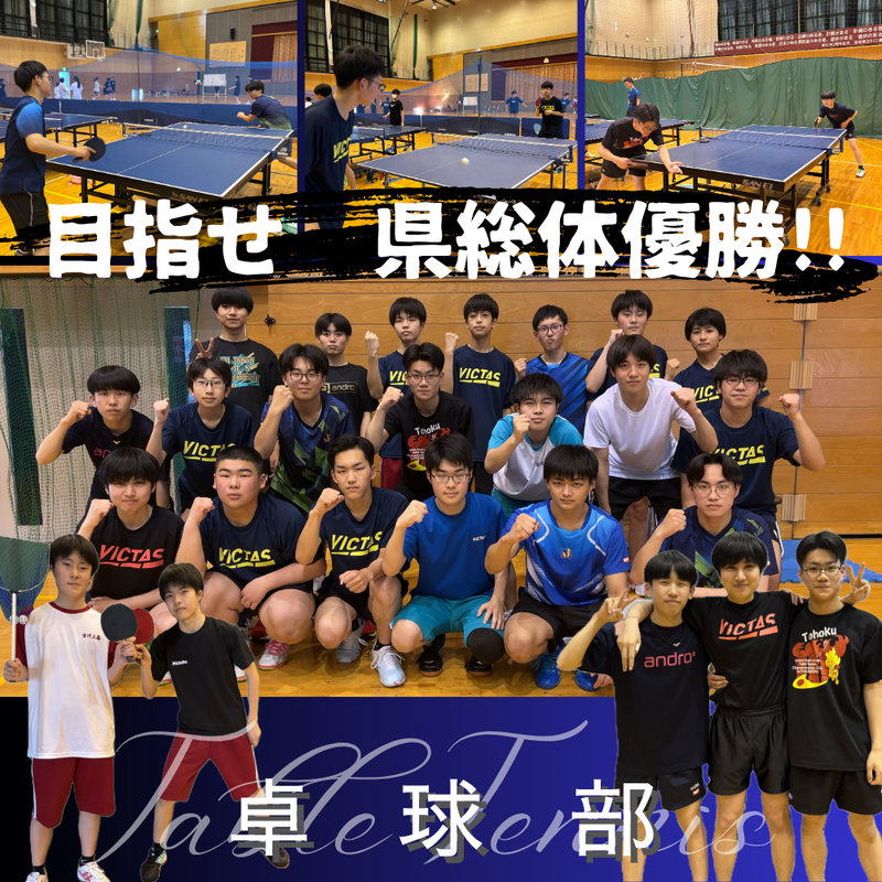 卓球部の活動の様子です。卓球部は2年生7名、1年生13名で活動しています。県総体で優勝を目標に、日々練習に励んでいます。みんな笑顔で楽しく活動しています。応援よろしくお願いします!