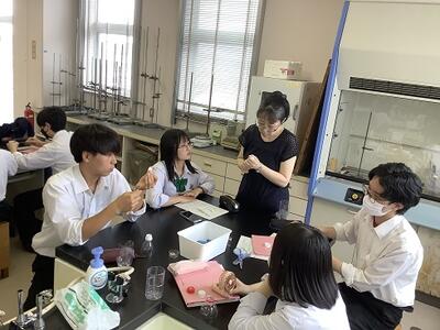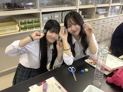 令和6年7月11日(木)化学技術科3年生の「科学と人間生活」の授業で、レーウェンフック型顕微鏡を作りました。ペットボトルの蓋にガラスビーズをはめ込み、タマネギの細胞を観察します。直径2mm程の小さなビーズではありますが、200倍近く拡大されるので、細胞の小部屋をはっきりと見ることができます。昔の科学者たちがどのようにして微生物を発見し、観察したのかの一端を感じ取ることができました。