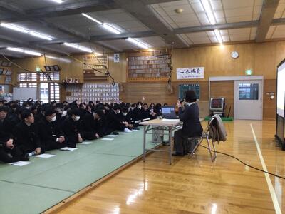 令和7年1月15日(水)消費者教育講座を実施しました。高校卒業後の新生活に向けて、講師の先生をお招きし、消費生活に関する知識や、実践的な能力を身に付けるための心構えについて講話をいただきました。卒業後の自分たちの姿を想像し、真剣な眼差しで耳を傾けている姿が印象的でした。
