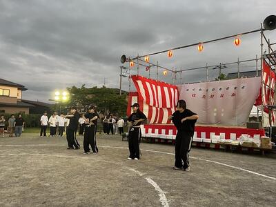 令和6年8月14日(水)大宮公園で行われた畑中町内会「盆まつり」に出演しました。今回のステージでは1・2年生を中心にダンスの内容を構成したので、初めてのステージに緊張していた様子もありましたが、町内会の皆さまと一緒に会場を盛り上げることができました。お誘いいただきました畑中町内会の皆さま、温かい声援を送っていただき、ありがとうございました。