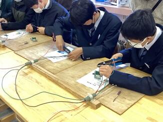 令和6年12月14(土)中学2年生を対象とした電気電子科の体験学習会を実施しました。電気電子科3年生が学科紹介を行い、各実習室では電子工作と電気工事のアシスタントをしながら中学生に丁寧に教えました。中学生のみなさんも初めてのことに緊張しながらも楽しく作業している姿が印象的でした。来年のオープンキャンパスでもお会いできることを楽しみにしています!ご来校ありがとうございました。