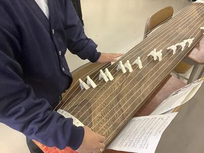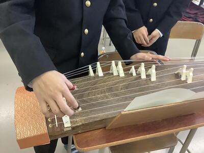 令和6年11月8日(金)5~6校時に実施した機械科1年1組の音楽の授業風景です。授業では、箏の演奏を通じて日本の器楽に親しむ体験を行いました。生徒たちは皆、真剣な表情で練習に取り組んでいます。最後の時間には「誰が一番貴族らしいか」をクラス全員で審査する予定です!目指せ、The貴族!盛り上がりながら楽しく学びましょう!