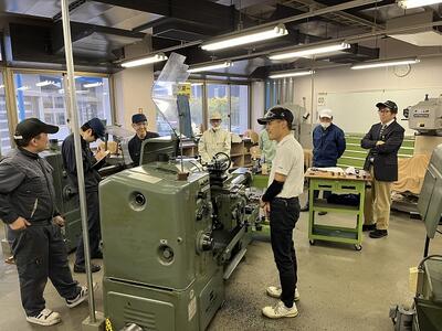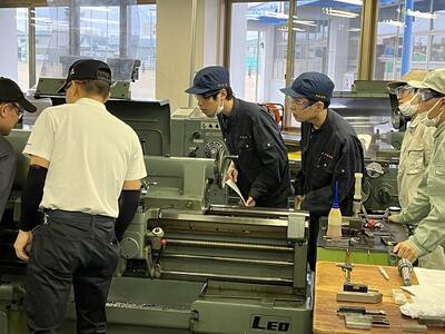 令和6年4月24日(水)株式会社アイシン様の技能五輪チームがご来校くださり、機械科2~3年生の希望者を対象に、旋盤及びCADの実演と、技能指導をしていただきました。最初にデモンストレーションを見学し、無駄のない動きと、素早い手さばきに見入っていました。生徒からは「ものづくりへの意欲が高まりました。今後の競技大会に生かしたい。」との声がありました。