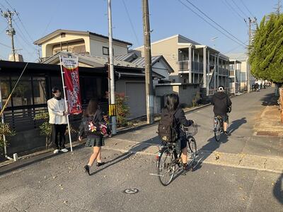 令和6年11月13日(水)3学年の生活安全委員がマナーアップ運動を実施しました。交通量の多い本校前の交差点と市民会館前にて、生徒が安全に登校できるよう、横断歩道の利用や自転車の通行指導を行いました。このマナーアップ運動は毎月継続して実施しています。自動車を運転される皆様には、横断歩道手前での一時停止などのご協力をいただき、誠にありがとうございました。