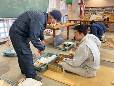 令和6年11月28日(木)講習に真剣に取り組む生徒たちの様子です。技能検定「建築大工」は、木造建築の大工工事に必要な技術を証明するための国家資格です。技能向上・試験合格を目指してみんな頑張れ!