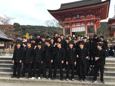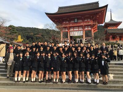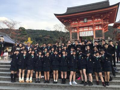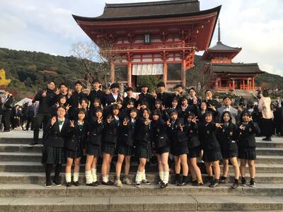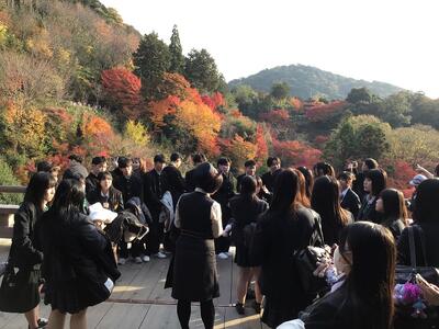 修学旅行の初日、生徒たちは京都の清水寺を訪れました!ちょうど紅葉が深まり、色とりどりの景色が境内を彩っていました。歴史ある建築物や美しい紅葉を背景に、写真を撮ったり散策を楽しんだりと、初日から思い出に残る体験ができたようです。