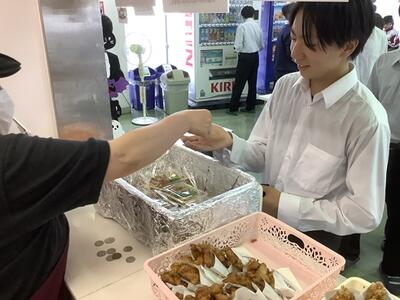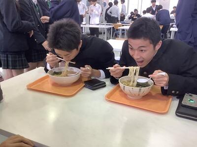 昼休みの食堂では、午前中の授業が終わると、生徒たちがそれぞれお目当ての食べ物を購入するために足早に向かいます。本日も多くの生徒が列を作り、にぎわいを見せています。しっかり食べて、午後の授業も元気に頑張りましょう!
