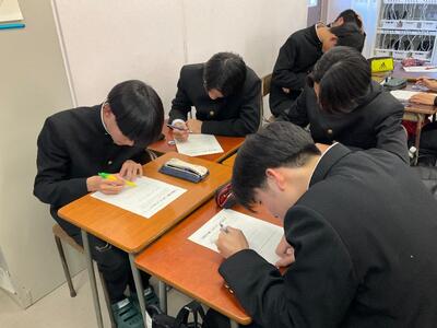 令和6年12月18日(水)スマートフォンの適切な利用を促すため、全校生徒を対象に情報モラル研修会を実施しました。具体例をもとに、日常の行動に潜むリスクや問題点を考え、意見を共有する内容です。