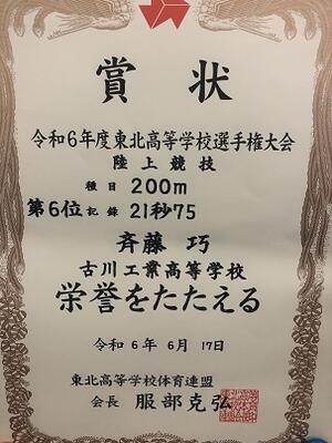 200m 第6位 建築科3年 斉藤 巧(インターハイ出場!!)