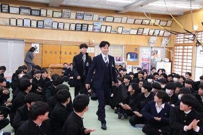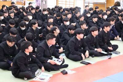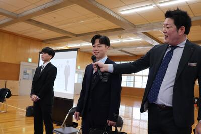 令和6年12月4日(水)紳士服コナカ様より講師をお招きし、「スーツ着こなし講座」を実施しました。普段の制服とは違い、スーツ姿の皆さんはどこか大人びた印象です。「スーツをきちんと着こなそうという気持ちが高まり、自然と背筋が伸びました」という感想もありました。自信を持ってスーツを着こなせる社会人を目指しましょう!