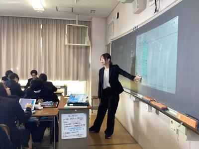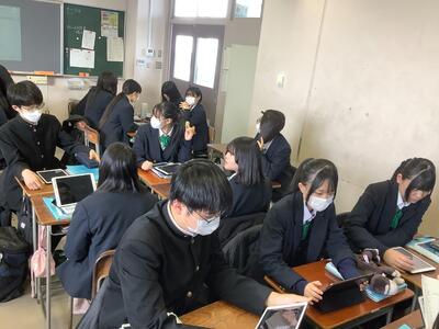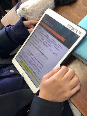 グループワークを中心に、測定値からph指示薬の色の変化を考え、それぞれのグループの情報をipadで共有し、クラス全体で協力しながら学びを深めました。多くの先生方に見守られ、緊張しているのかと思いましたが、生徒たちは積極的に意見交換しながら授業を楽しんでいるようでした。