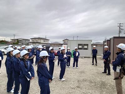 令和6年10月23日(水)建築科の1~2年生が、大崎市日本語学校学生寮新築工事の現場見学会に参加しました。生徒たちは真剣に担当者の話を聞き、一生懸命にメモを取りながら学ぶ姿が印象的でした。