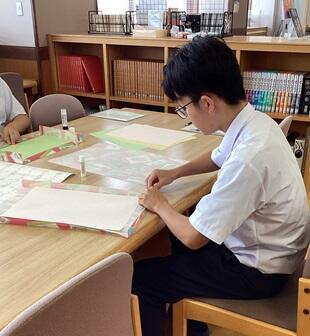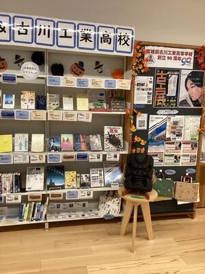 大崎図書館2階ティーンズコーナーで図書委員おすすめの本を展示しています。生徒のおすすめコメントを記入したPOPも飾られています。また、図書委員が作成したエコバッグも置いてありますのでご自由にお持ちください。学校案内パンフレットや生徒の作品も展示しています。