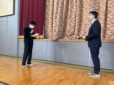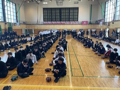 令和6年11月6日(水)火災避難訓練を行い、生徒たちは体育館へ避難しました。実際の火災では、煙で視界が遮られたり、防火扉が閉じられたりと、訓練のようにスムーズには動けない場合もあります。日頃から避難経路をしっかりと確認しておくことが大切です。また、これから火を取り扱う機会が増えてきますので、十分に注意して行動しましょう。最後に、防火防災委員長の千葉 啓太さん(機械科3年)が宣誓を行い、訓練は無事に終了しました。