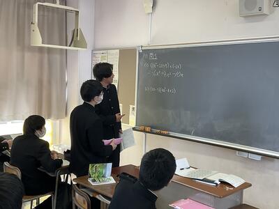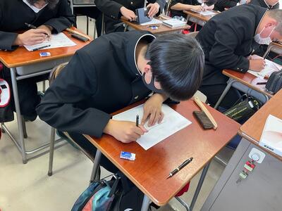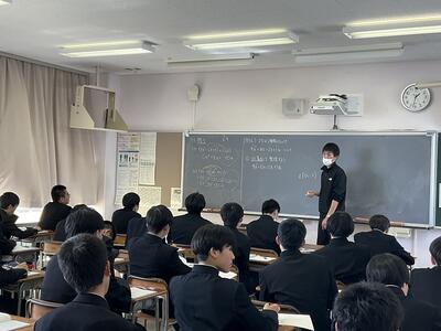 令和6年4月19日(金)一年生の授業風景を撮影しました。電気電子科は数学の授業で「式の展開・分配法則」を学び、機械科2組の製図では、ワークノートに線を描く練習をしました。みなさん一生懸命授業を受けています。
