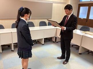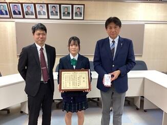 建築科2年生の藤田心菜さんが「税に関する高校生の作文」で古川税務署長賞を受賞しました!税についての学びや考えを深め、一生懸命取り組んだ成果が認められました。おめでとうございます!写真は本校での授賞式の様子です。