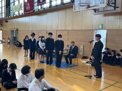 令和6年10月26日(土)古工展閉会式後に、生徒会新役員認証式を行いました。新しい生徒会長には、機械科2年1組の畠山月聖さんが就任しました。1年間という短い任期ではありますが、生徒の代表として、皆が楽しく学校生活を送れるよう頑張っていただきたいと思います。