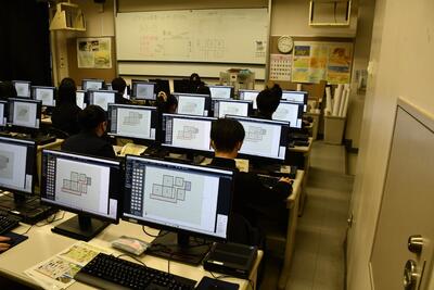 令和6年12月12日(木)~13日(金)建築科1年生を対象に3Dマイホームデザイナー講座を実施しました。このソフトは、平面図を入力することで、住宅などの建築物を立体的に起こしてくれるものです。住宅の提案やシミュレーションにとても適しています。今回は、「サザエの家を3Dマイホームデザイナーで再現してみる」という課題で行いました。使い方を覚えるとスムーズに作業を進めていました。最近はじまった、製図の自由設計の課題にもシミュレーションで使用できます。とても楽しく学習することができました。