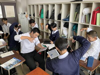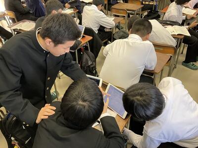 令和6年10月30日(水)機械科1年1組・2組の工業情報数理の授業風景です。生徒たちはGoogleサイトに掲載されている教材を使用し、練習問題を繰り返し解いています。分からないところは友達同士で教え合いながら学習を進めています。