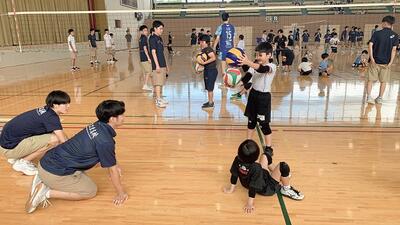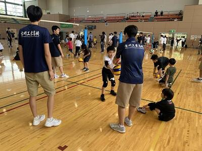 令和6年8月1日(木)石巻総合体育館において、石巻地域の小中学生を対象に東レアローズの方によるバレー教室「心は一つプロジェクト」が行われました。本校バレー部の1~2年生も参加し、小学生にボールの扱い方やフォームなどを教えるなどのサポートをしました。