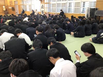 令和6年11月28日(木)生徒たちはいよいよ12月3日(火)から始まる修学旅行に向けて準備を進めています。本日は武道場にて、修学旅行のしおりの読み合わせが行われました。日程や注意事項、持ち物の確認など、みんな真剣な表情で聞き入っていました。