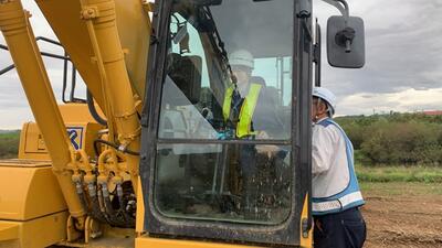 令和7年10月10日の午前中、土木情報科2年生が藤山工務店の「北上川下流三輪田上流地区築堤工事」現場を見学しました。ICTを搭載した建機が活用されている現場に赴き、OBからの話を聞いたり、数名の生徒が実際にバックホウの操作を体験させていただきました。藤山工務店の皆様、この度は見学・体験させていただきありがとうございました!